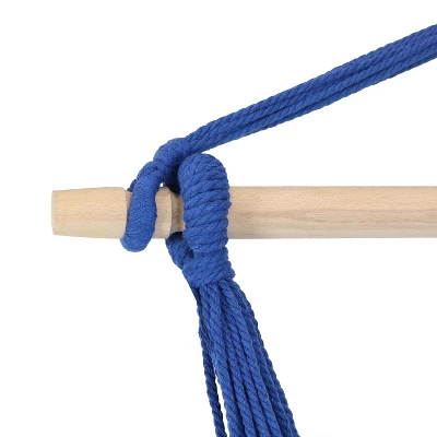 Add a comfortable place to relax on the patio, porch, deck, or backyard with this hammock chair swing. This hanging hammock chair features a cushioned seat and a soft back for extra comfort while enjoying an evening on the patio watching the sunset. The beautiful blue hues of the soft fabric are sure to complement any outdoor decor style. The spreader bar is made from strong beech wood, and the chair cover is made from durable polyester with a polyurethane foam fill and can support up to 265 lbs. Hang this chair from a hammock chair stand (stand not included), a supportive beam on the porch, or a tree branch to enjoy some quiet reading time or conversation with friends and family. Please note, no hanging hardware is included with this hammock chair. Whether enjoying a cup of coffee in the morning or unwinding in the evening, this comfortably hammock chair is sure to be a new favorite relaxation place. Please note, a stand is not included with purchase.