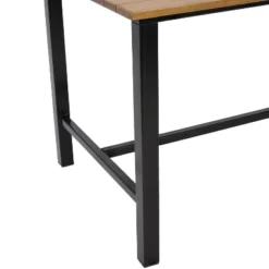 Add modern style and durability to the patio, dining room, front porch, or backyard with this sophisticated dining table. Made with a naturally weather-resistant chestnut wood tabletop with a sleek, black powder-coated steel frame, this durable table will complement a variety of industrial or rustic decor schemes. The slatted tabletop provides a unique, contemporary look. This outdoor patio table provides enough space for four average-sized adults to comfortably sit around it and is sturdy enough to support up to 200 lbs. Pair it with a modern dining bench or sophisticated set of chairs (not included). This table is easy to assemble and all of the necessary tools and hardware needed for assembly are included. If used outdoors, cover the table and store indoors in order to prolong the product life. This table is durable enough for outdoor use while remaining stylish enough for indoors.