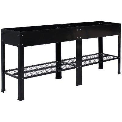 Grow beautiful flowers and bountiful vegetables without back straining or crouching down with these stylish and durable galvanized steel raised garden beds. This set of 2 standing planters can be used individually or connected together to create the best arrangement for your patio or garden. These raised garden beds are built to last with durable steel construction and a rust-resistant, hot dip galvanized finish in classic brown for a sleek look. Plus, these raised garden beds with legs also feature a convenient lower shelf that can be used to store garden tools, gloves, and other supplies. With enough space to grow multiple plants all at the same time, this raised steel garden bed is sure to bring bright, beautiful blossoms to your home with ease. Light up your backyard or garden with this raised bed and watch your plants flourish. Everything needed to assemble this piece is included in the box.