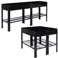 - Sunnydaze Raised Steel Garden Bed with Mesh Shelf – Set of 2