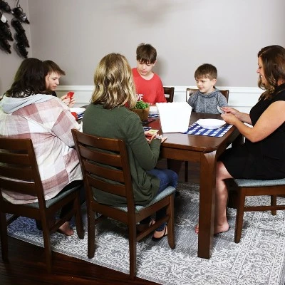 Sunnydaze Decor Sunnydaze Indoor 7-Piece Solid Rubberwood Dining Table And Chairs Set – Dark Walnut With Gray Cushions
