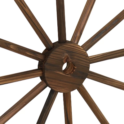 Give your garden, backyard, or home that country feeling everyone knows and loves with this rustic wooden wagon wheel. This versatile decoration is made from natural fir wood, complete with a natural brown finish. This nautical decoration is easy to care for and is sure to last for years to come. It arrives completely preassembled and ready to be used right out of the box. This decorative wagon wheel can be used both indoors and outdoors. It can be propped up against a wall, fence, or structure of some kind on the patio, deck, porch, or in the yard or garden. It can also be hung on the wall (mounting hardware not included) inside your home to add a rustic, western touch to any living room, bathroom, kitchen, bedroom, or entryway. This wheel makes a great gift for a western-style loving interior decorator and is wonderful for decorating a rustic themed event.