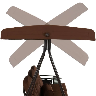 Enjoy the shade in the garden or backyard with this outdoor 3-person canopy swing. The side tables on both sides provide convenient spots to place a drink, savor a refreshing beverage in the fresh air. Plus, these plastic trays are a handy place to set down a magazine or mobile device. The trays fold down when not in use. The included comfy cushions and plush pillow make it easy to curl up on the seat to enjoy a good book or just take in the sights and sounds of nature. Loosen the knobs on either side of the canopy to adjust the tilt for optimal shade all day long. Once the canopy is in the right spot, just tighten the knobs to lock it into place. The canopy is also removable to make it easier to move and store before strong winds or winter weather. The durable steel frame features an attractive brown powder coating that complements the color of the cushions and canopy.