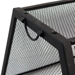 This unique, rectangular, Northland Grill outdoor fire pit features a trapezoidal metal mesh topper for keeping sparks and embers contained while cooking your favorite foods over the fire. Its grand, lengthy design with convenient grilling area is great for parties of all kinds. It incorporates a cooking grate that makes it ideal for BBQ areas on patios and in backyards. The fire pit is made from solid steel and is durably finished in black for a contemporary look and resistance to the outdoor elements. A hinged access door on the side of the mesh topper provides easy access to burning logs and the grilling surface. A tubular metal rail encircles the brazier, making it easy to lift and move. An ideal outdoor fireplace for patios and yards, this unit comes with a grilling grate, a multi-purpose poker tool to safely maintain the fire, and a durable, fitted vinyl cover to keep this fire pit and grill safe on the off-season!
