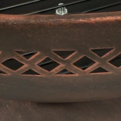 Add simple style and warmth to any backyard, patio, deck, or other outdoor area with this wood-burning, chalice-style, steel fire pit with an included spark screen and firewood poker. Constructed of tough steel with a beautiful warm, copper finish, this outdoor fire pit will make a stunning addition to any outdoor gathering space while remaining naturally resistant to the outdoor elements. It includes several accessories to safely tend and enjoy the fire, including a spark screen to contain stray embers, a fire grate to promote optimal airflow, and a fire poker to stir the logs and ashes from a safe distance. The subtle faux brass tack detailing along the edges of the bottom of the base adds stylish appeal to this outdoor fire pit. The top edge of the fire bowl features a beautiful and elegant diamond cutout pattern that adds a decorative touch to any outdoor space or campsite.
