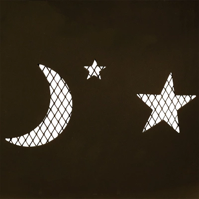 - Decorative star and moon cutouts on firebowl
