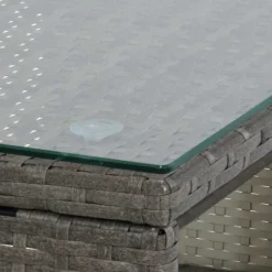 - • GREAT ON THE PATIO: The overall sectional is 73″ W x 49.25″ D x 31″ H and weighs 51.6 lbs. The sectional has a weight capacity of 700 lbs. The coffee table is 33.5″ W x 19.5″ D x 16.75″ H with a 0.25″ thick tempered glass tabletop and weighs 15 lbs. The coffee table has a weight capacity of 55 lbs. The set Includes a stylish accent pillow that is 17″ square.