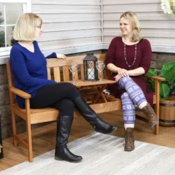 Sunnydaze Decor Sunnydaze Outdoor Meranti Wood With Teak Oil Finish 2-Person Bench Seat With Pop-Up Table – 60″ – Brown