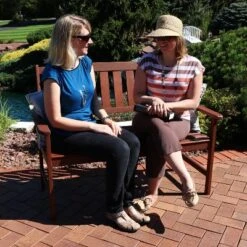 Relax and enjoy the outdoors with this stylish and comfortable meranti wood, outdoor, classic styled bench. This outdoor bench is constructed of meranti wood with a mahogany teak oil finish for strength and durability against the elements. The natural tones will also effortlessly complement any existing style or decor. Whether you are striving for a boho chic or farmhouse style, the clean lines and classic appearance of this versatile piece of furniture will update any outdoor living space. This bench provides comfortable seating for two adults and is great for a variety of outdoor locations including around the fire pit, on the patio, or in the garden. This stylish bench is sure to become a favorite during family gatherings or friendly get-togethers. The bench has a weight capacity of 440 lbs, perfect for you and a loved one. Provide an effortless place to relax in your yard with this beautiful, classic bench.