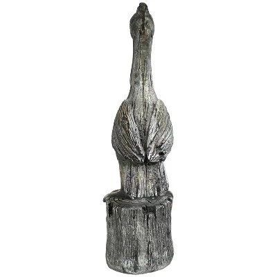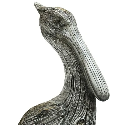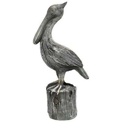 Add coastal charm to any lawn or garden with this perched pelican outdoor garden statue. Constructed of polystone, this beautiful pelican portrays a wood-like texture that is easy to maintain in a variety of indoor or outdoor settings. Polystone is a compound made up largely of polyurethane resin mixed with powdered stone additives that give it added weight and a porcelain or stone-like feel. Polystone is still lightweight enough to maneuver easily while remaining durable against the outdoor elements for long-lasting use and style. This attractive lawn ornament beautifully depicts a single pelican resting atop a wood pillar overlooking any patio, deck, garden, yard, poolside, or other landscaping wherever placed. The realistic details add to the appeal of this nautical statue. This unique bird would look great when placed near the entrance of the home, standing elegantly next to a pond or small creek, or in the front yard to see all who pass by.
