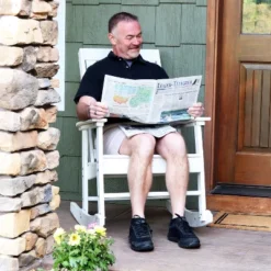 • ALL-WEATHER CHAIR: This outdoor rocker is made from durable high-density polyethylene (HDPE) to withstand most weather conditions. HDPE requires no staining or regular maintenance unlike rocking chairs made from wood.
