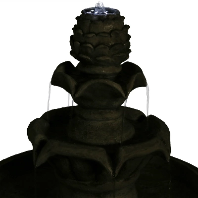 • STRONG AND EASY TO MAINTAIN: Fountain is constructed of polyresin that replicates the look of classic stone and other classic materials; Material is durable and can withstand the elements; Water feature is also easy to keep clean; Water gently bubbles from the top of the fountain and cascades down the tiers below; Pedestal features delicate decorative details for added appeal