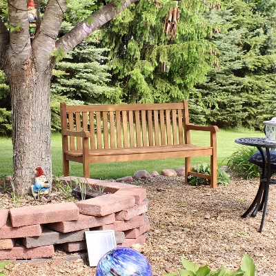 Sunnydaze Decor Sunnydaze Outdoor Solid Teak Wood With Light Stained Finish Patio Garden Bench Seat – 60″ – Light Brown