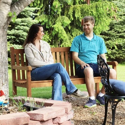 Sunnydaze Decor Sunnydaze Outdoor Solid Teak Wood With Light Stained Finish Patio Garden Bench Seat - 60" - Light Brown - Image 4