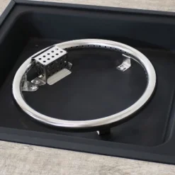 - • GREAT SIZE: This fire pit measures 28″ square x 24″ H. The tabletop measures 28″ square x 1″ thick. The base is 17.25″ square. The clearance height is 0.5″ tall. The fire area is 13″ square x 2.25″ deep. The door measures 19.25″ W at the top (12.75″ W at bottom) x 20.5″ H. The burner ring has a 10″ diameter. The Inner chamber measures 20″ square at the top (16″ square at bottom) x 20.75″ tall. The hose measures 20″ long. It weighs 51.4 lbs.
