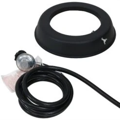 - stainless steel burner, ignition battery, lava rock & 9′ gas hose with regulator